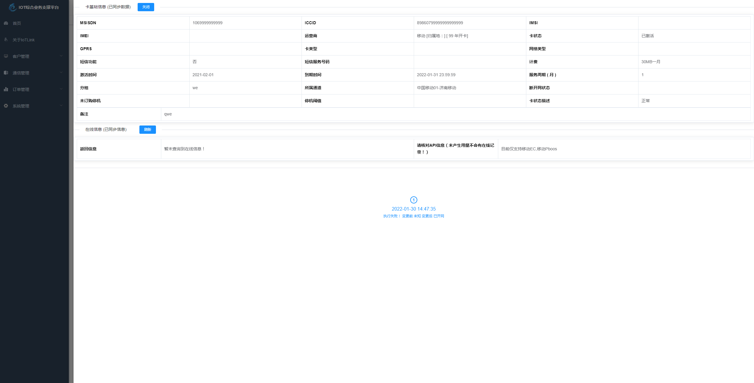 物联网管理系统源码 号卡智能管理平台 轻量级物联网综合业务支撑平台